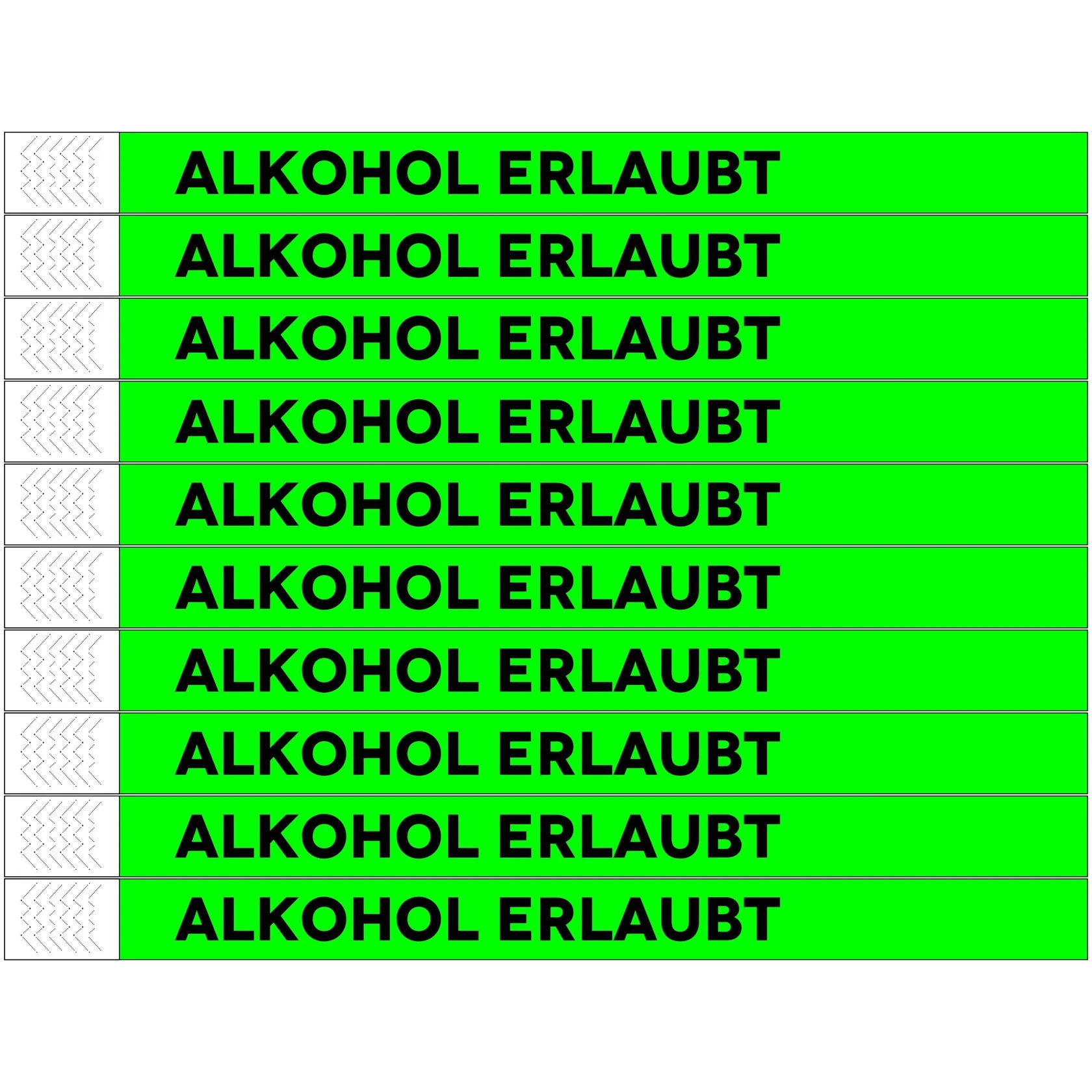 Tyrex Einlassbänder Neongrün - Sichere Altersverifikation 'Alkohol erlaubt' für Events