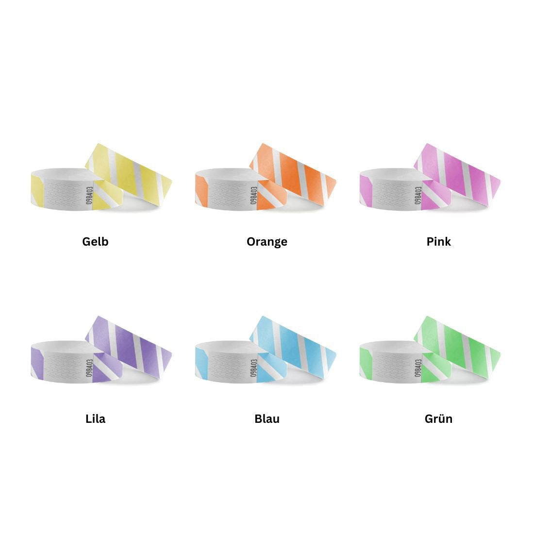 TYVEK-Einlassbänder gestreift mit Klebeverschluss, in verschiedenen Farben – pro 100 Stück