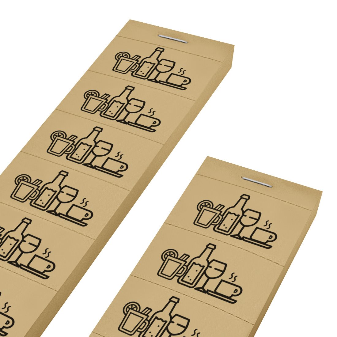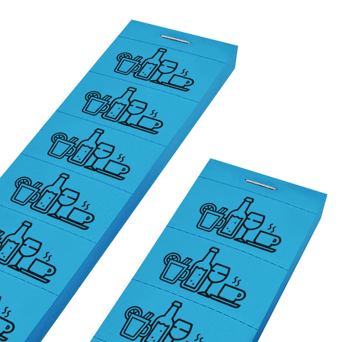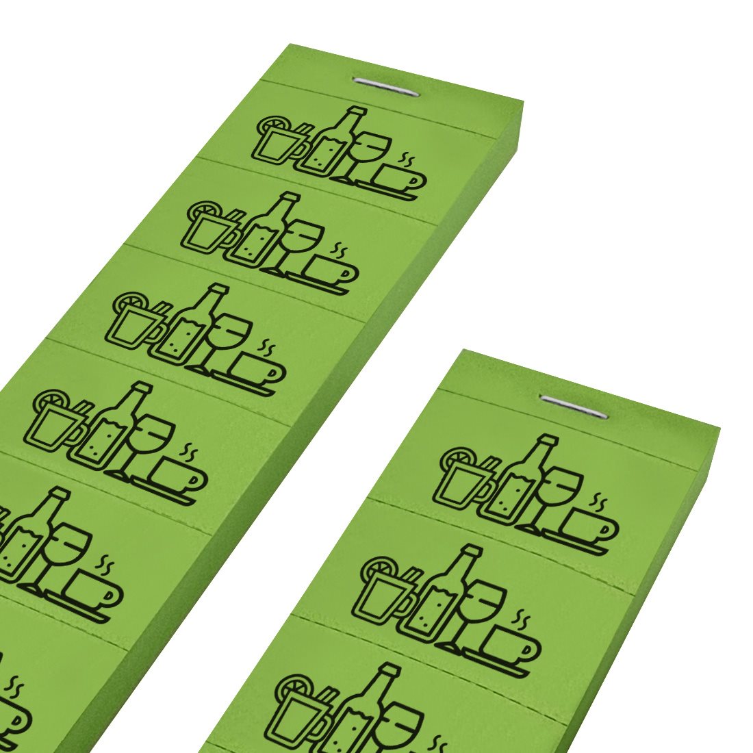 Bunte Wertmarken im Block mit Getränkesymbolen – 1000 Abrisse pro Satz