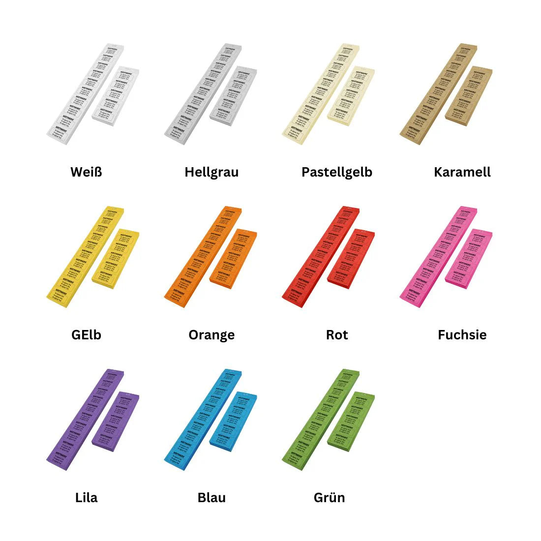 Wertmarken Block auf praktischen Streifen mit drei individuellen Textzeilen - 1000 Abrisse pro Satz