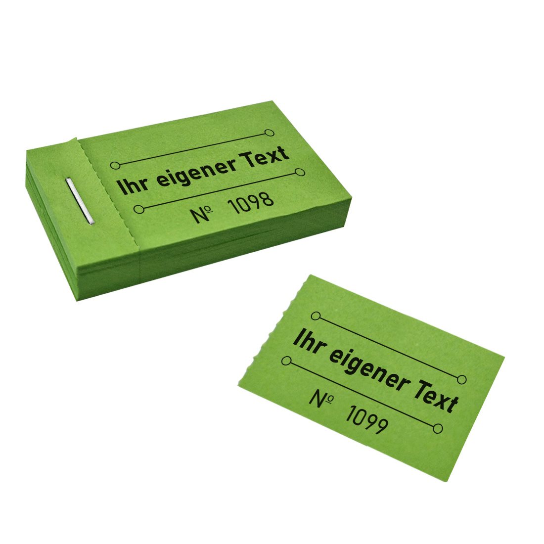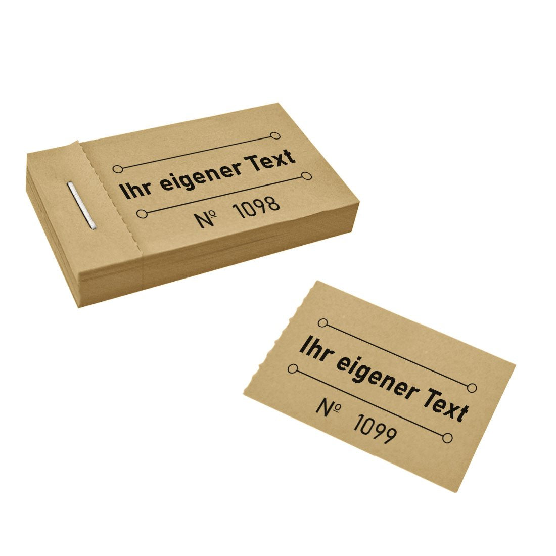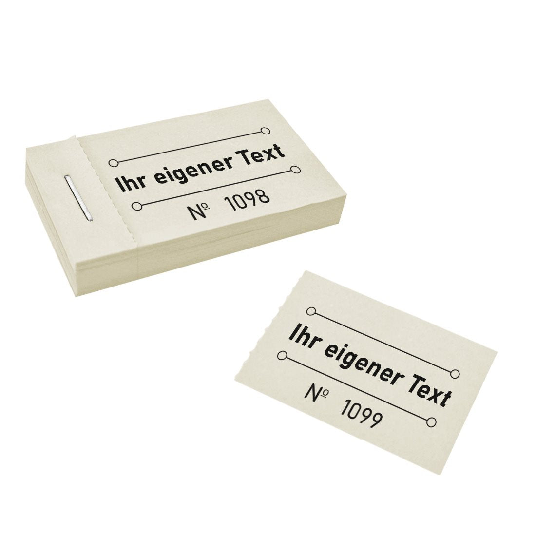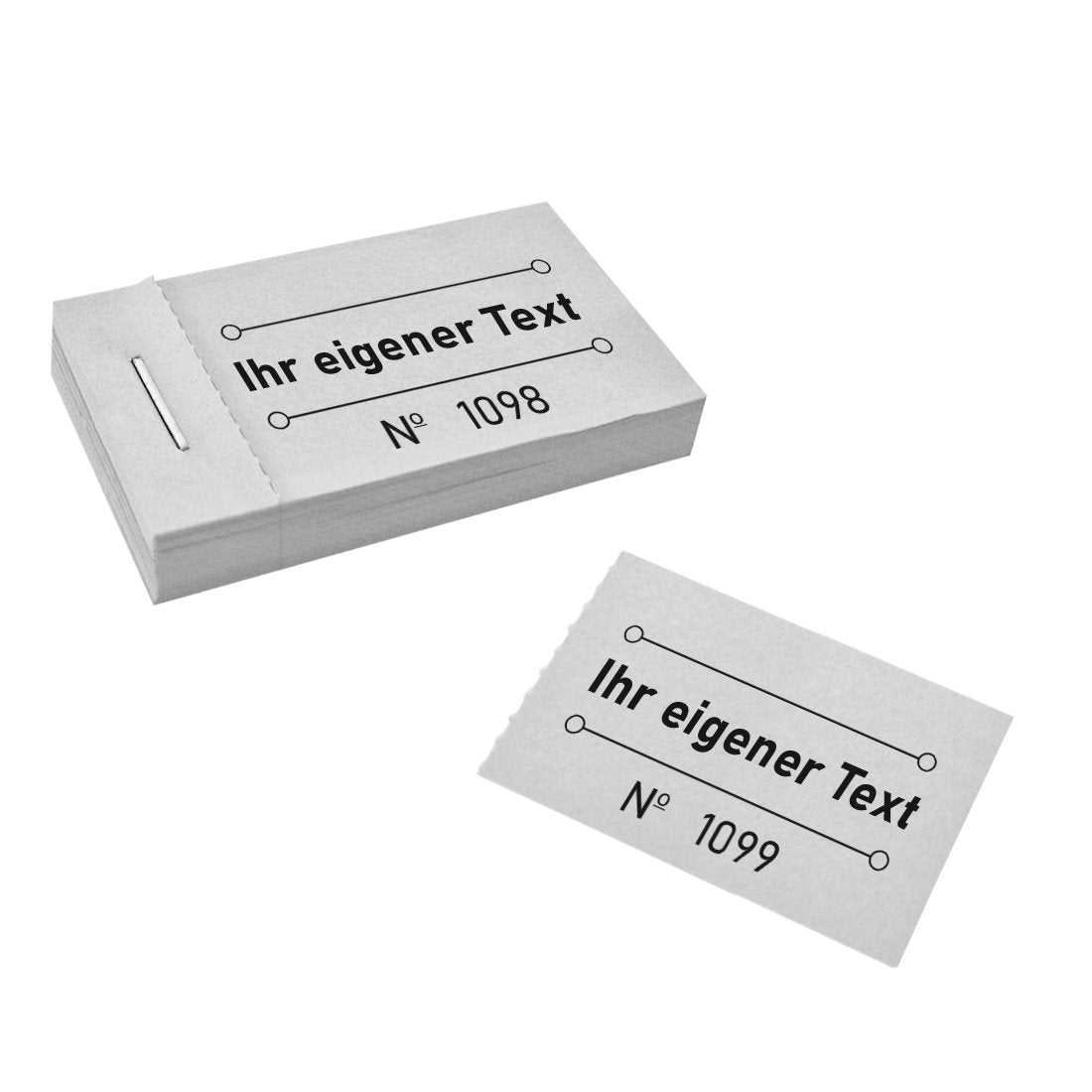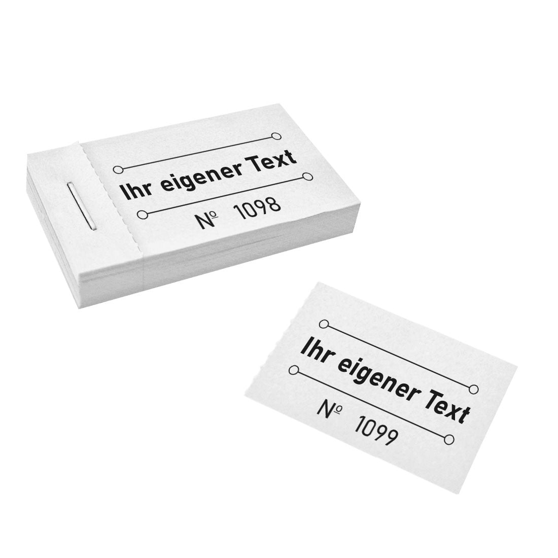 Diese 60 x 30 mm großen Wertmarken lassen sich mit Ihrem individuellen Text gestalten und sind mit fortlaufender Nummerierung für zusätzliche Sicherheit ausgestattet. Hergestellt aus strapazierfähigem 120 g/m² Papier, kommen die Marken in praktischen Blöcken zu je 50 Stück und lassen sich dank der Perforation einfach und schnell abtrennen. Für eine noch persönlichere Gestaltung können Sie aus verschiedenen Papierfarben wählen, sodass die Wertmarken optimal zu Ihrem Event passen. Ideal geeignet für Partys, Gastronomie und besondere Anlässe. Ein Satz umfasst insgesamt 63 Blöcke – perfekt für jede Veranstaltung!
