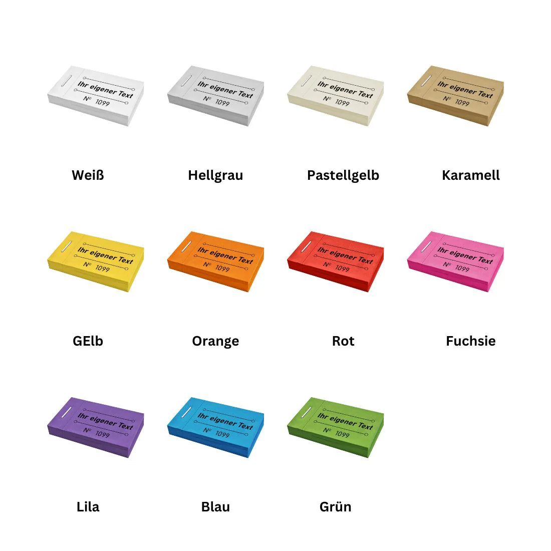 Diese 60 x 30 mm großen Wertmarken lassen sich mit Ihrem individuellen Text gestalten und sind mit fortlaufender Nummerierung für zusätzliche Sicherheit ausgestattet. Hergestellt aus strapazierfähigem 120 g/m² Papier, kommen die Marken in praktischen Blöcken zu je 30 Stück und lassen sich dank der Perforation einfach und schnell abtrennen. Für eine noch persönlichere Gestaltung können Sie aus verschiedenen Papierfarben wählen, sodass die Wertmarken optimal zu Ihrem Event passen. Ideal geeignet für Partys, Gastronomie und besondere Anlässe. Ein Satz umfasst insgesamt 27 Blöcke – perfekt für jede Veranstaltung!