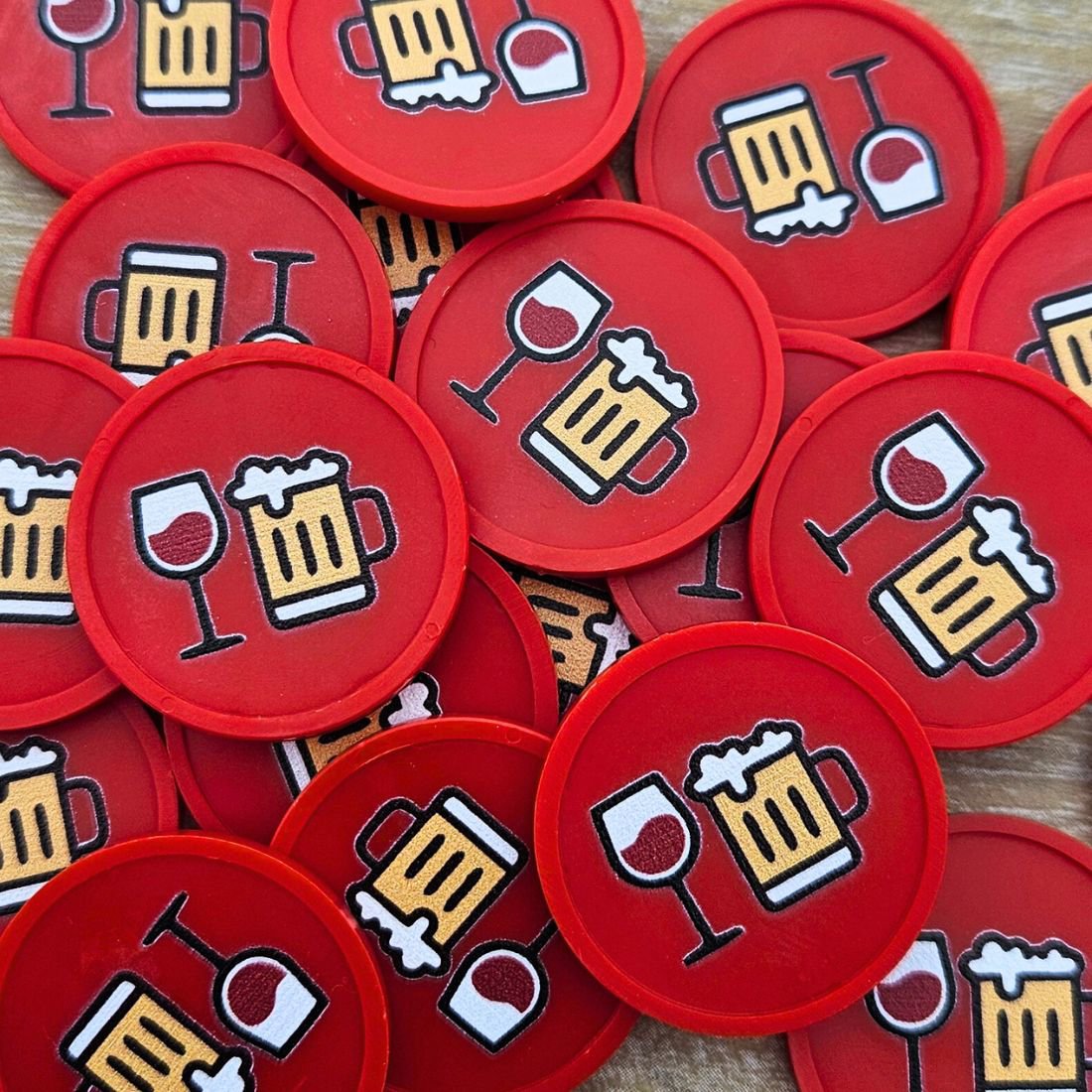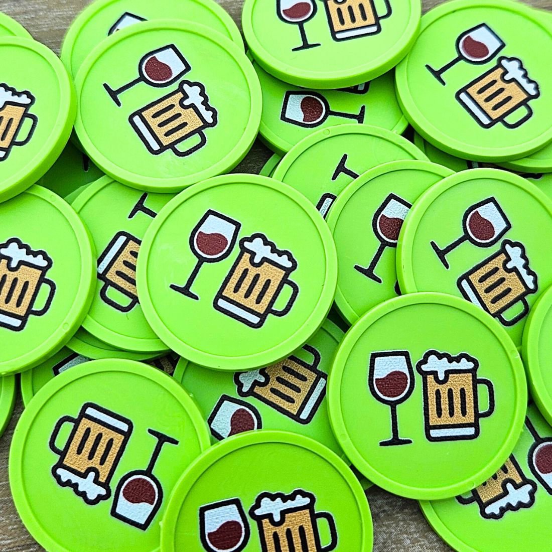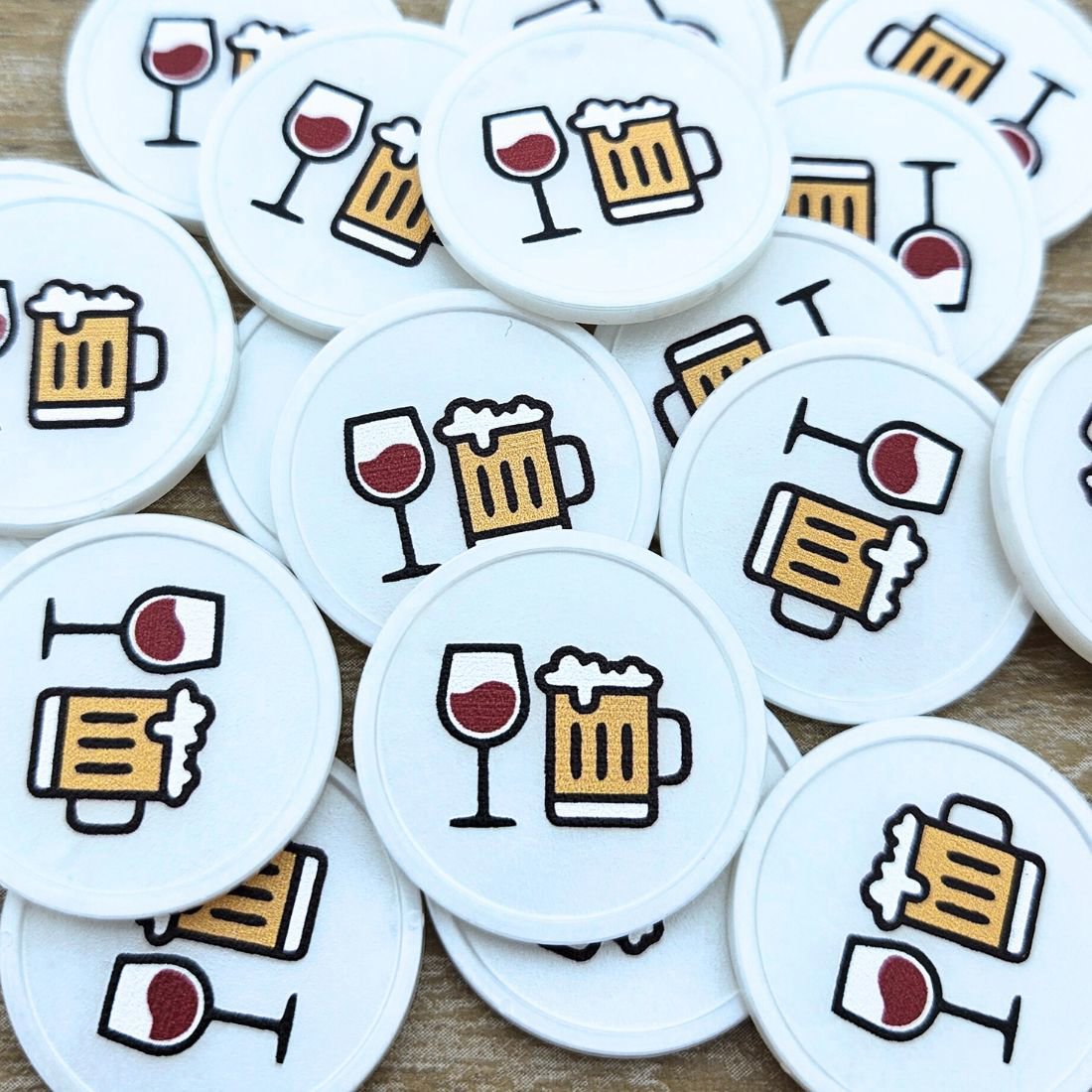 Kunststoff Wertmarken Chips mit Bier & Wein Ø29mm - pro 100 Stück
