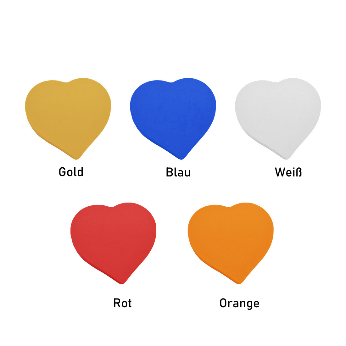 Die herzförmigen Kunststoff Wertmarken sind ideal für vielfältige Anlässe. Mit großzügigen Abmessungen von 40x40 mm und einer Dicke von 2 mm bieten sie eine randlose Gestaltung. Erhältlich in praktischen Sets von 100 Stück, präsentieren sie eine fröhliche Farbpalette. Diese vielseitigen Kunststoffmünzen eignen sich perfekt als Wertmarken, Pfandmarken oder Spielchips und verleihen jedem Event eine besondere Note.