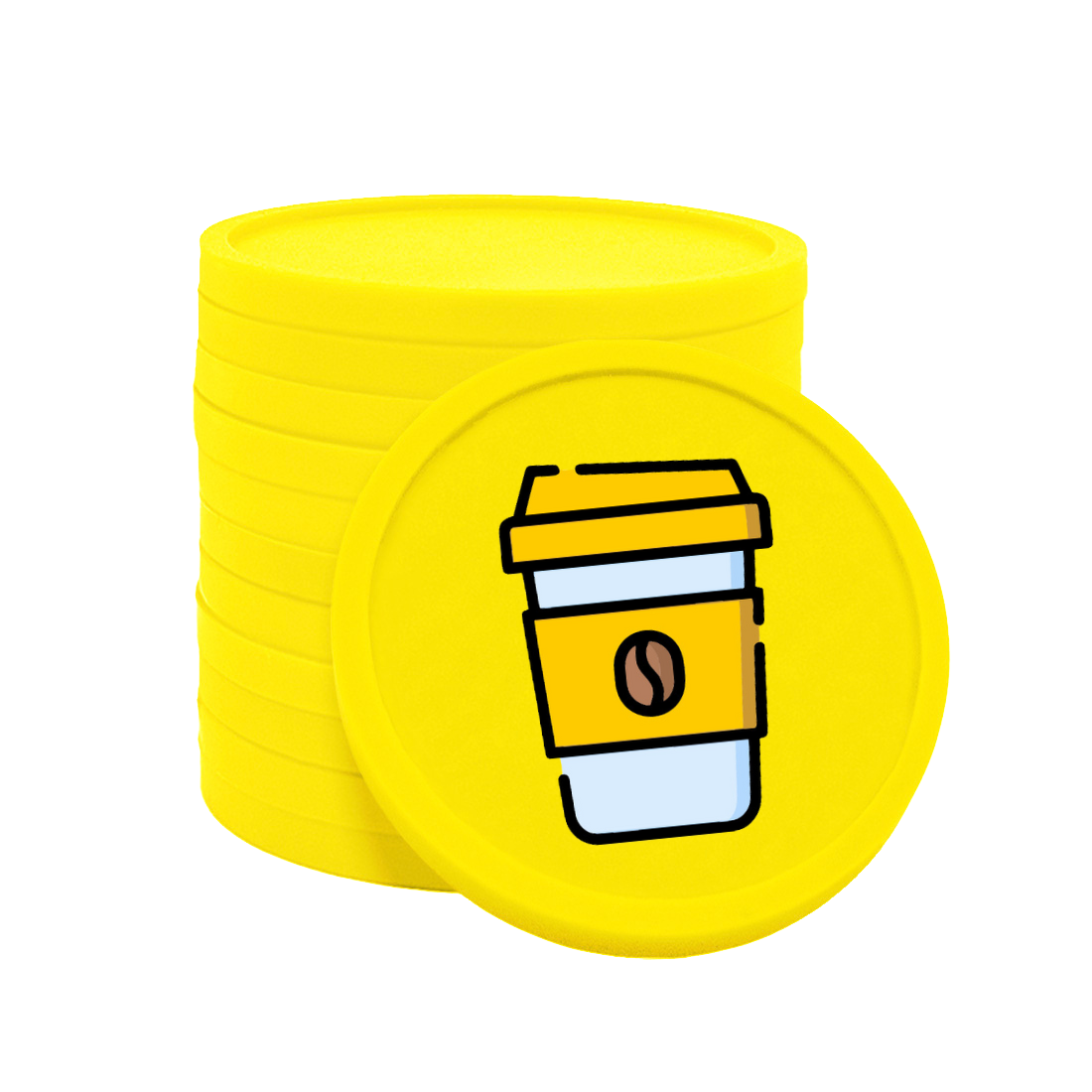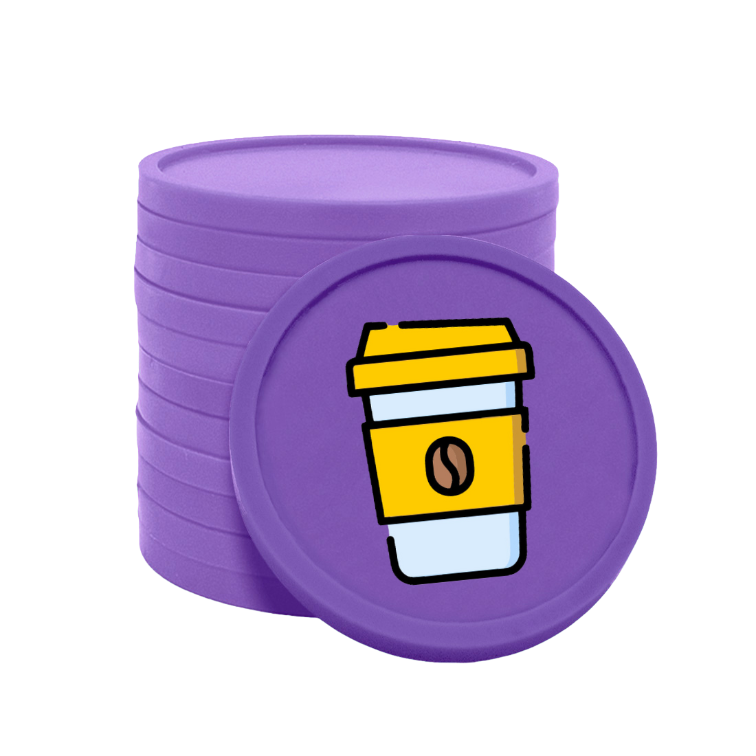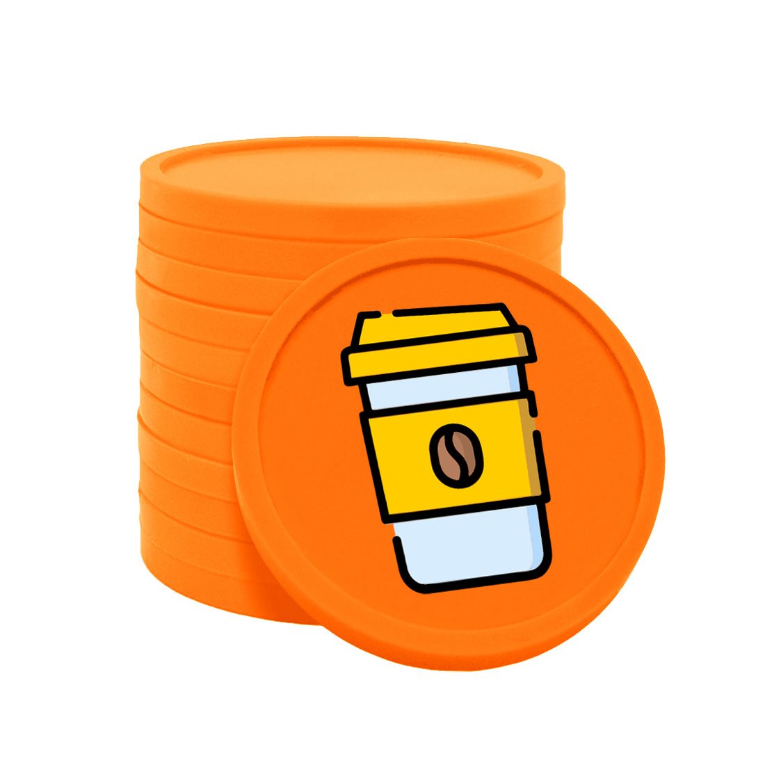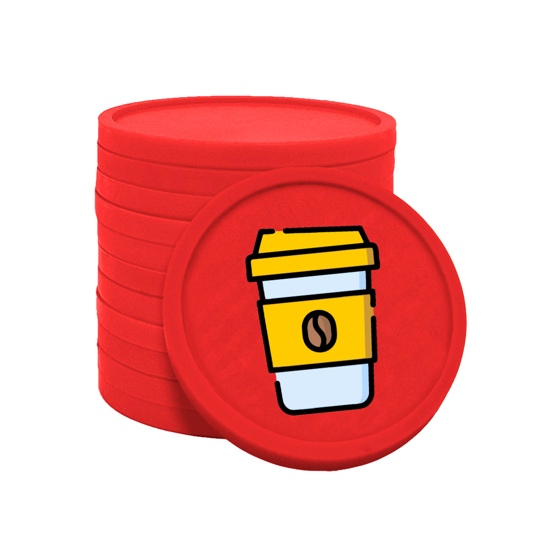 Farbig bedruckte Kunststoff-Wertmarken Chips – 29 mm Durchmesser, 100 Stück für Partys und Events. Langlebige, robuste Chips mit Kaffeebecher-Aufdruck in verschiedenen Farben, ideal als Getränkemarken oder Zahlungsmittel. Perfekt für Festivals, Feiern und Veranstaltungen.