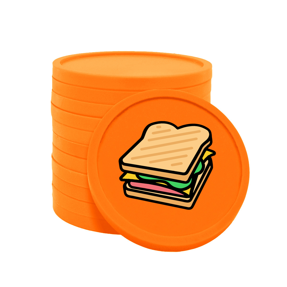 Bedruckte Kunststoff Wertmarken Chips mit 29 mm Durchmesser – robust, langlebig und ideal für Partys, Festivals und Events. Der einseitige Fullcolor-Aufdruck mit Sandwich ist optional auch doppelseitig möglich. 100 Stück pro Packung für eine einfache Organisation als Wertmarken oder Zahlungsmittel.