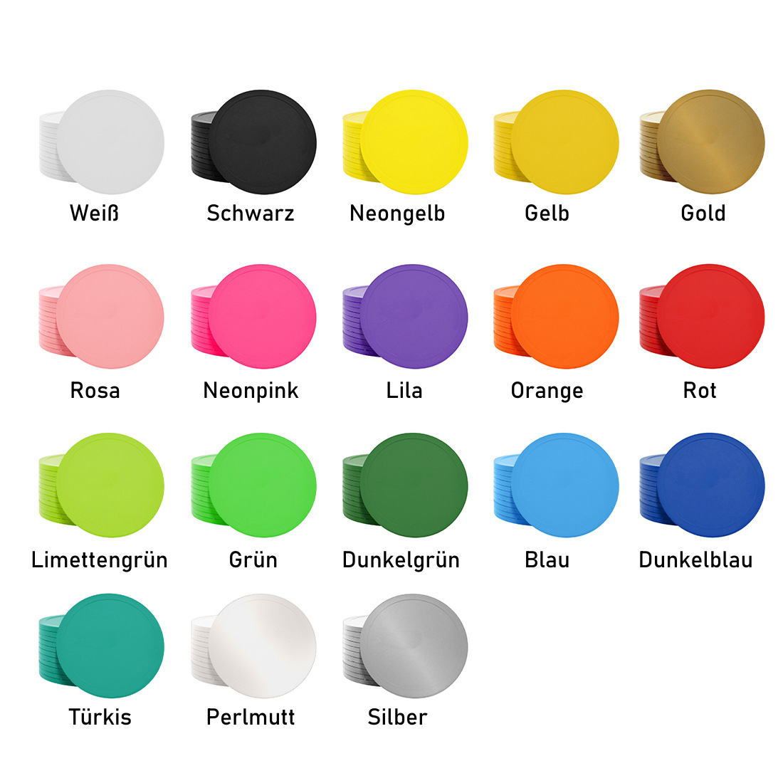 Die individuell gestaltbaren Wertmarken Chips haben einen Durchmesser von 70 mm und eine Dicke von 2,5 mm. Sie sind ideal für Veranstaltungen, Gastronomie oder als Spielchips und bieten dank des erhöhten Rands eine hervorragende Handhabung. Erhältlich in verschiedenen Farben, lassen sich die robusten Kunststoffmarken ein- oder beidseitig bedrucken und sind in 1000er-Packungen verfügbar. Perfekt für personalisierte Pfand- und Getränkemarken. Lesen Sie mehr