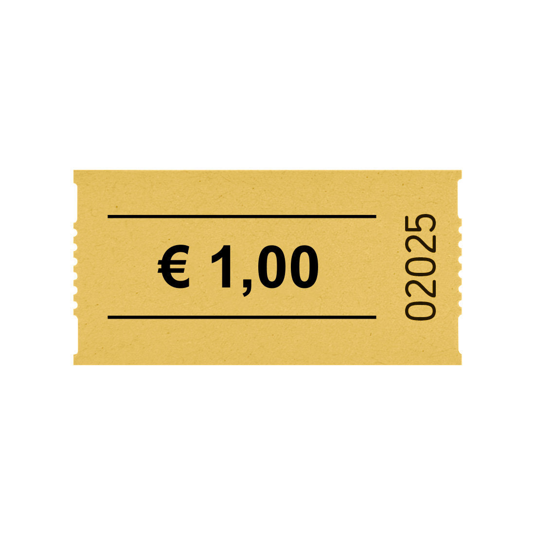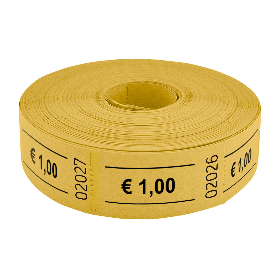 Wertmarken Rolle in Gelb mit €1,00 und fortlaufernder Nummerierung, 57x30 mm- 1000 Abrisse pro Rolle