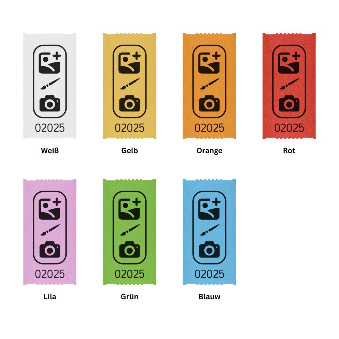 Gestalten Sie Ihre eigenen Wertmarken auf einer Rolle im Format 57 x 30 mm mit individuellem Aufdruck. Ob Nummerierung, Text oder Logo – der Druck erfolgt in Schwarz und sorgt für eine klare Lesbarkeit. Die Marken sind fortlaufend nummeriert und mit einer Perforation versehen, sodass sie sich mühelos abreißen und ausgeben lassen. Ideal für Veranstaltungen, Partys und verschiedene Einsatzzwecke. Verkauf pro Rolle à 1000 Abrisse. Lesen Sie mehr