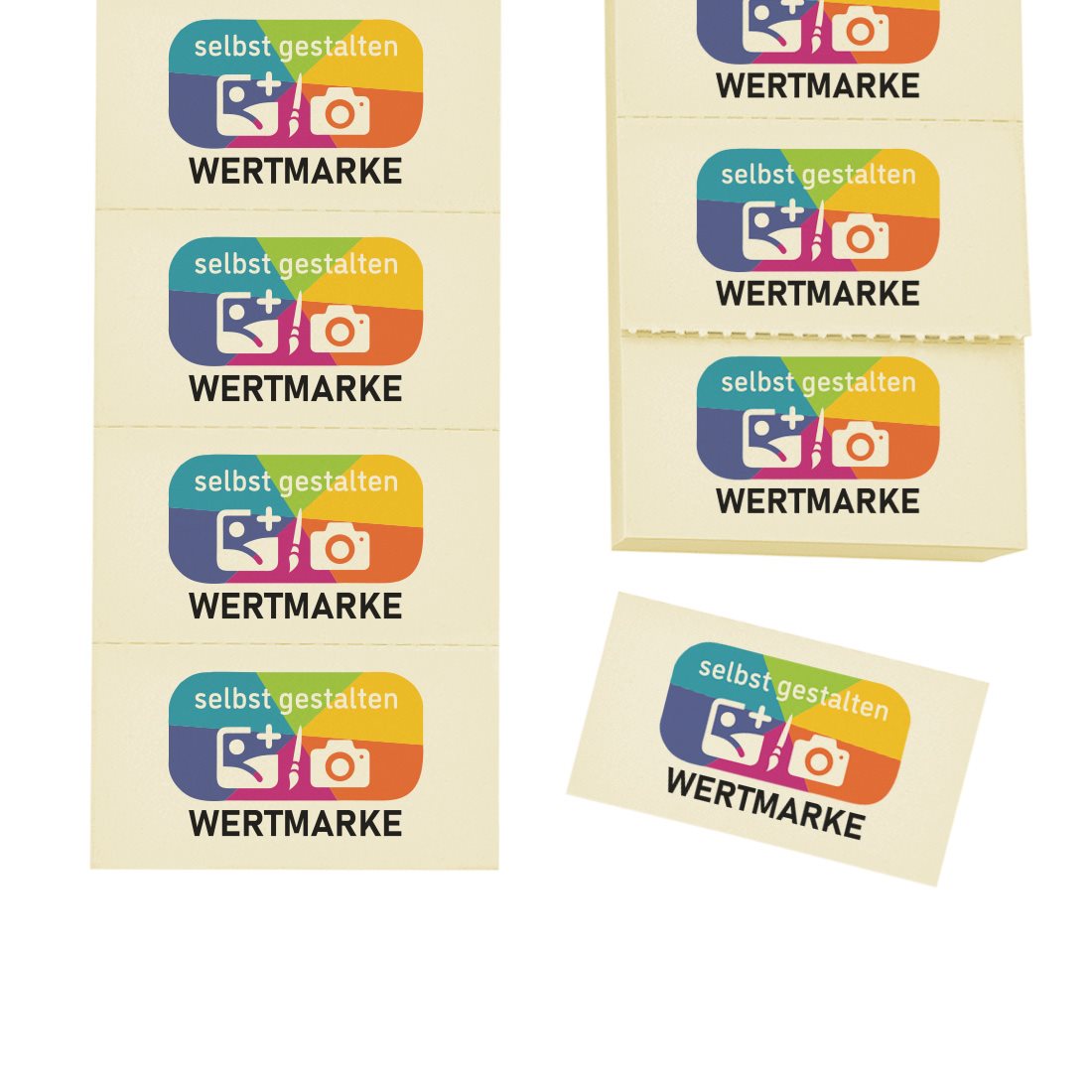 Wertmarken auf praktischen Streifen selbst gestalten mit 'Wertmarke'und eigenem Full-Color Aufdruck - 1000 Abrisse pro Satz